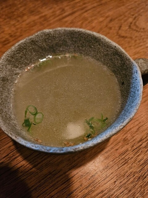 ランチは前菜におまかせ串4本と親子丼に鶏スープという内容なんじゃが、串が終わった時点でわしはもう少し食べたくて、婆さんはお腹いっぱいという状況じゃったからダメ元で追加の串は一人前から大丈夫かお聞きしたところ、なんとOKとのことで、数本追加させてもらったぞい。