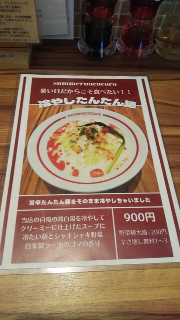 冷やしたんたん麺は、もののこころの夏季限定メニューです。