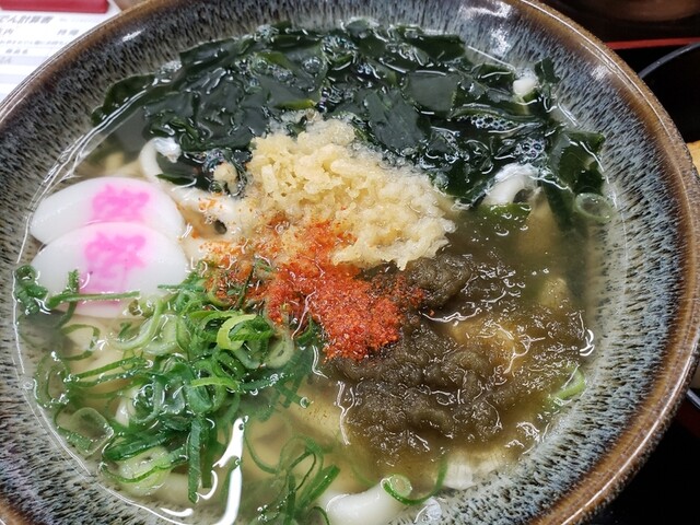 玉子うどんはワカメがいっぱい!