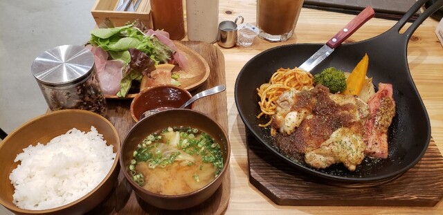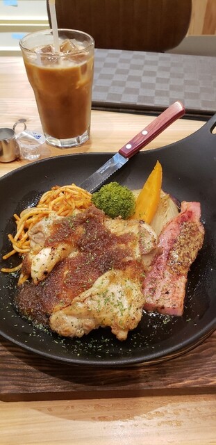 鶏もも1枚焼きと厚切りベーコンステーキ+セットアイスコーヒー 1683円