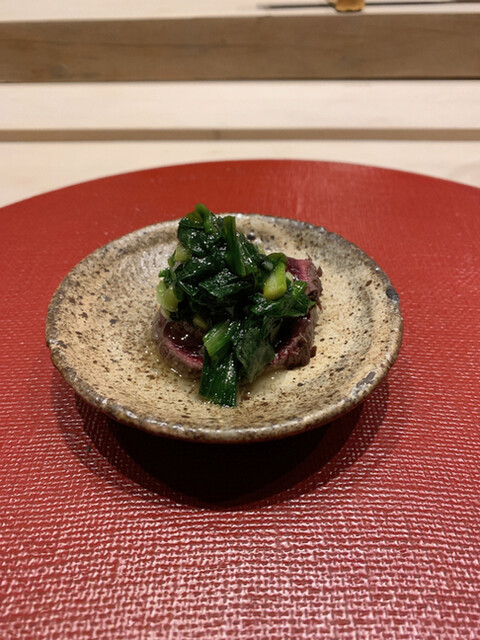 8.クジラ、行者ニンニクのオイル漬け
