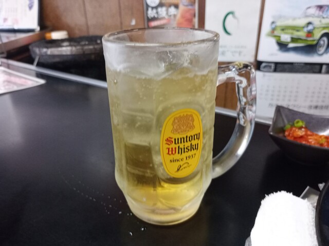 頂いたのは、肉系はカルビ・赤身・中おちカルビ・切り落としがセットになった「松坂牛セット」、第二陣として、松坂牛の内臓系メニューから、「上ミノ」と「赤センマイ」。箸休め的なオツマミは、「チャンジャ」と「ミニトマト」。お酒は最初だけ「生ビール」を頂き、あとは「ハイボール」という構成です。