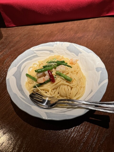エビとアスパラのペペロンチーノ