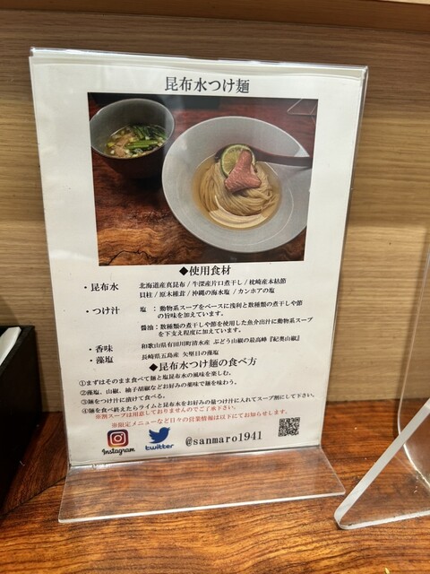 期間限定で昆布水つけ麺があったので、特選1500円を注文。まずは、昆布水の状態で一口、うまい!