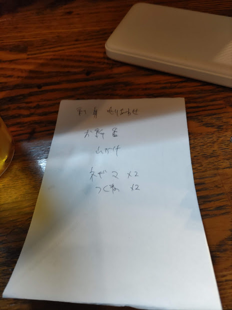 ワンオペなので、注文は手書きです。レシートも兼ねてます。
