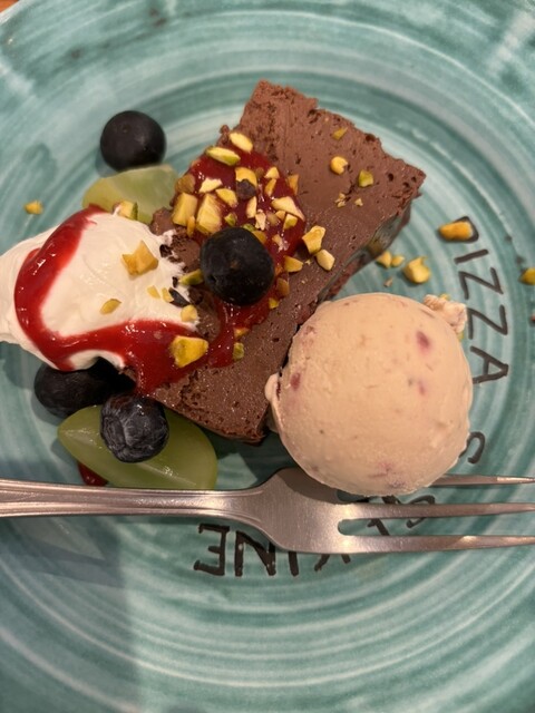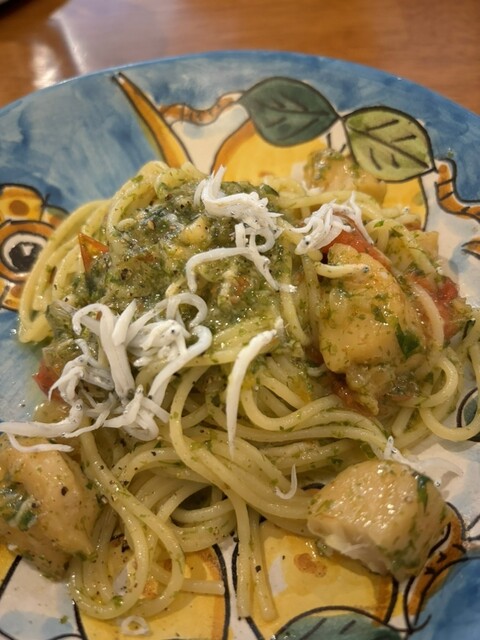 前菜盛り合わせ、ピザまたはパスタ、ドリンク。ピザは2種類選んでハーフ&ハーフに、パスタは2皿に盛り付けて提供していただきました。ベビーカーを置くスペースを準備してくださり、安心して食事を楽しめました。