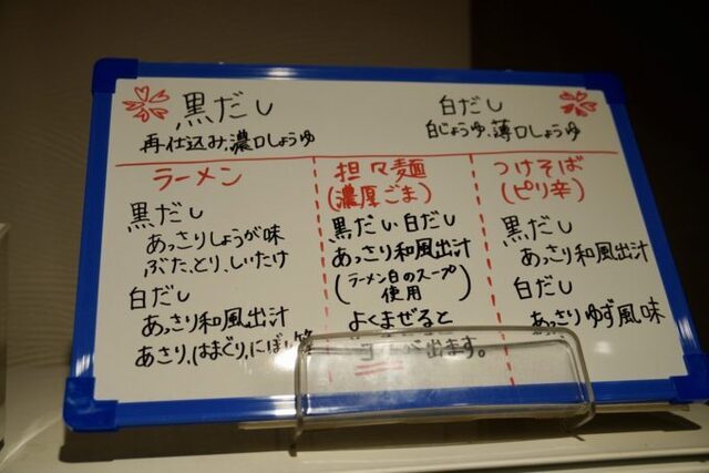 メニューラーメンは黒だし・白だしの2種類。