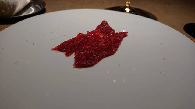 目の前で一から作り始めた「塩とミルク」では出来立てのチーズにブリオーシュをつけて食べたときは衝撃でした。それから、私は玉ねぎがそんなに得意ではないんですが、新玉ねぎのパスタはパスタに絡む玉ねぎの濃厚さも後味すっきりで口に残らない感じも好きでした。そして、何より16歳の経産牛を今日に合わせて調整、厚さ、繊細な火入れ、いろんな角度から一頭の牛を思う存分味合わせてもらいました。