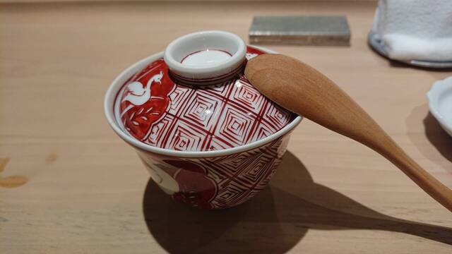 「貝が苦手」と言いながら貝類を並べてくる大将。でもって、その貝類が印象的でつまみ・にぎりどれも美味しく貝好きには嬉しい今日のネタ。その他のアラ、オコゼ、たこなども美味しく、間にワカメを酢味噌で食べながら常時いい流れを感じていました。からすみは実はそんなに好んで食べないんですけど餅で食べるのがやはりいいですね。