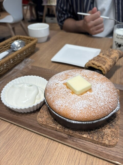 パンケーキふわふわでバターの塩味とクリームの適度な甘味のバランスが最高。