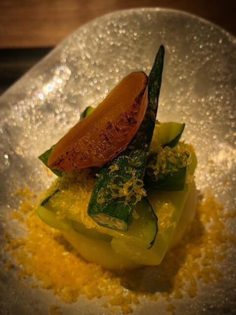 これが軸を作り、オクラ、とうもろこし、蕪、金目鯛、ズッキーニ、等々、食材の旨味を最大限に引き出している。