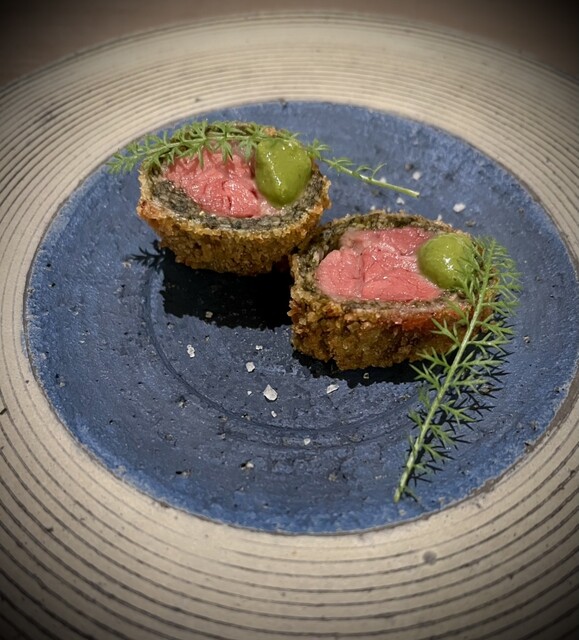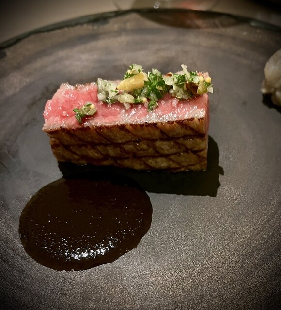 全ての料理に共通するのは、沖縄食材が効果的に組み込まれ、沖縄とフレンチの、いわば至高のマリアージュとなっていること。とりわけアクセントとしてのカカオの使い方が素晴らしく、アグーのハンバーグは抜群の美味さ。牛肉にオリオンビールのソースも絶品だった。