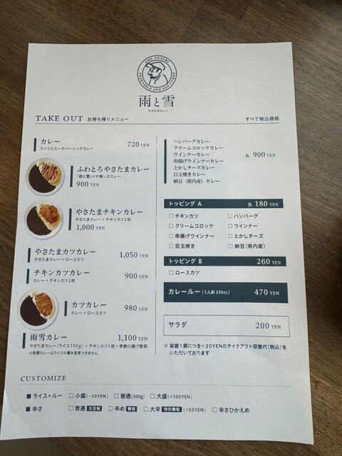 雨雪カレーは、野菜が多く美味しいですがご飯の量が150g固定なので残念でした。
