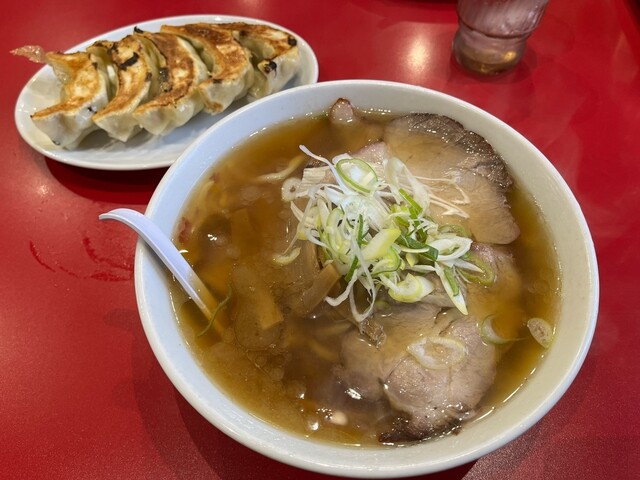 透き通った醤油スープがなみなみと注がれ、太くてコシのある麺、食べ応えのある肉感たっぷりのチャーシューは他にない味です。餃子もこちらのお店はおすすめで、1個の大きさが通常の餃子の1.5〜2倍はあります。餡も香辛料が効いてて本格的な中華の味を感じます。