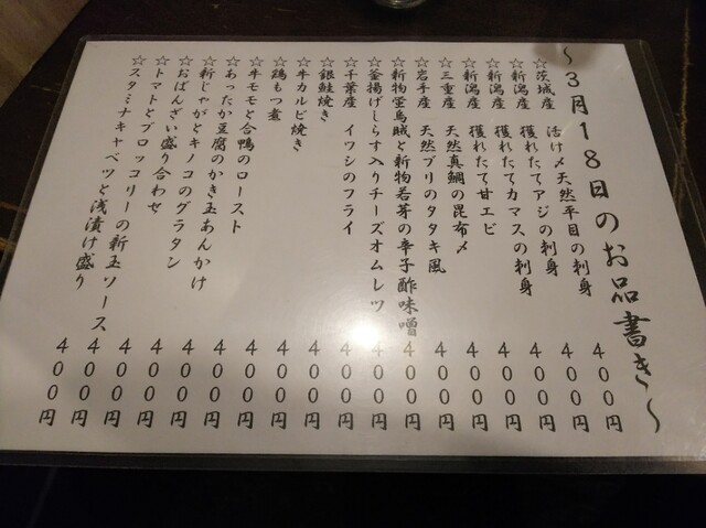 この日は久しぶりのコース。飲み放題つきで5000円です。