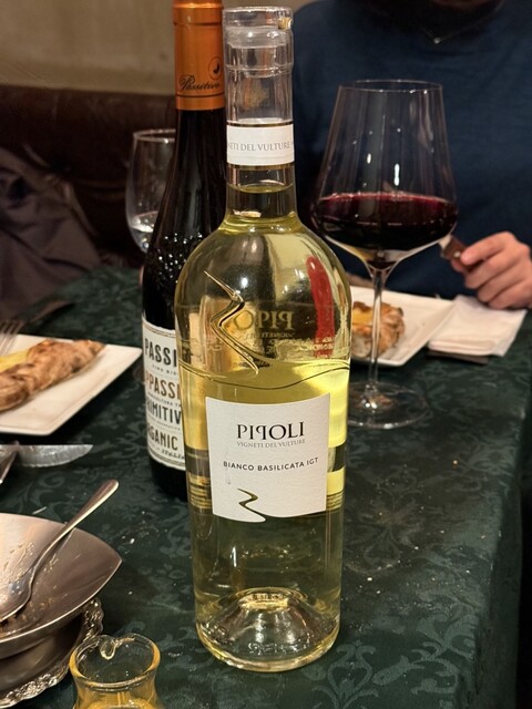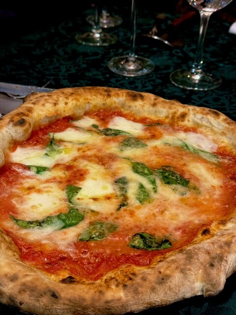 →バジルペースト、水牛モッツァレラ、グラナパダーノ、松の実。ラクレットピッツァが来たタイミングで注文。バジル×松の実、オリーブオイル、ニンニク、チーズ → ジェノベーゼの方程式。松の実は炒ってあり香りが引き立つ。これまた食べた瞬間、異次元の旨みに全身の細胞が喜びを感じているのが分かった。ピッツァは飲み物です。非常に美味。