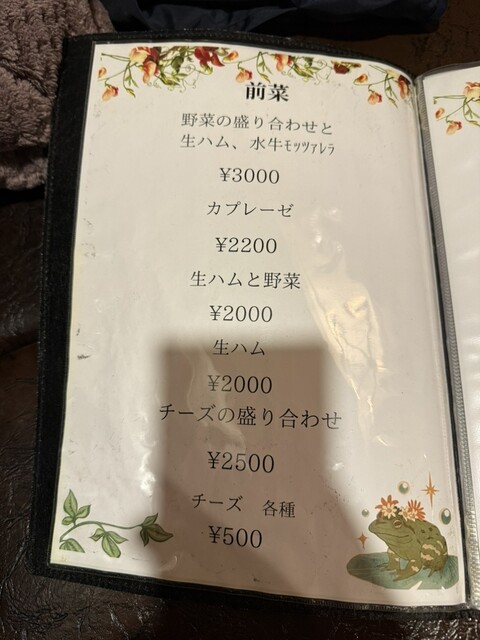 森上オーナーは食材にとことんこだわる。生ハムの原木はフランス、塩はシチリア、チーズはフランス・イタリア・スイスなどから。野菜は森上オーナーのご両親が栽培する無農薬野菜だそう。毎朝畑に出ておられると。