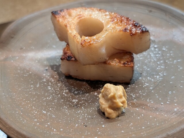 大正時代から続く農家さんが作るというこだわりのレンコン。シンプルに焼き上げただけなのに、驚くほどの甘みとシャキシャキとした食感。