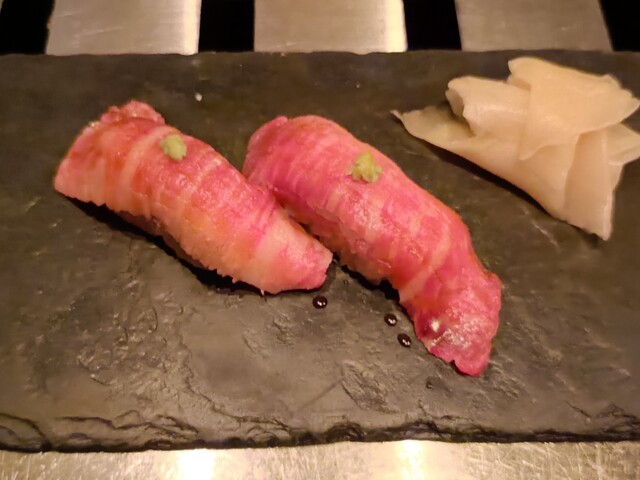 今回はOZmallにて、OZmall限定の和牛の握り寿司や黒毛和牛など六本木ディナー+2時間飲み放題コースを予約しました。このコースはOZmallにて20%オフで6000円、さらに店舗グループクーポンでさらにお安くなり、一人4500円となりました。