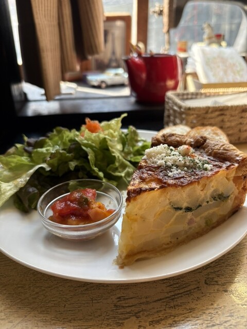 日曜日のお昼、12時オープン少し前に並んで入りました。店内はとても可愛らしくて、癒し空間でした。頼んだのはキッシュとオムライス。周りのお客さんもキッシュを頼んでいる方が多かったです。スイーツもたくさん種類があったので、次回はスイーツも食べに来たいです。
