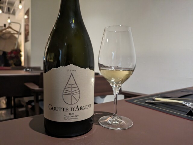 ここに合わせるのは、 日本酒の中でも大銘酒の獺祭が極力した、世界で初めて日本酒酵母で仕立てた白ワイン。