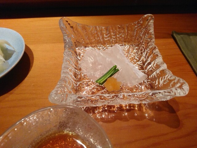 大将の鶴見さんは物腰柔らかく、お客様との適度な距離を保ちながらも気配りを欠かさない御方。今回は相棒の金沢寿司デビューなので、早めに開店を待ち、大将の真ん前の席を確保。軽くお話をさせてもらいつつ、大将のお仕事をじっくりと拝見。いつもながら所作が美しい♪