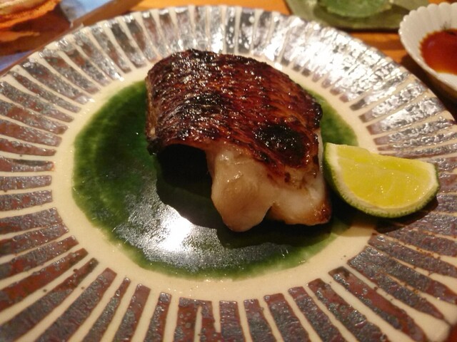 ■のどぐろ焼き…のどぐろは炭火で香ばしく焼かれ、特製の漬け汁に漬けられて非常に甘く、旨みが豊富!正直、色々と頂いたのどぐろ料理の中で、今も最高の美味しさと思ってます♪