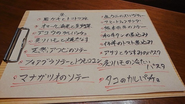 ある日のはしご酒④・・・『足袋』関連で『たべごとや』さん⇒『ito』さん⇒BAR『uni』さん(後日、口コミ掲載)に伺った後、更にパスタが食べたい!という事になり、当然の如く『じょかーれ』さんへ。この日もお忙しいご様子で、22時を過ぎてもカウンターは結構混雑。