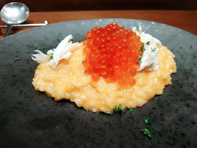 リゾットは新鮮な生のいくらと、渡り蟹のほぐし身が大量に乗っており、これまた贅沢♪通風まっしぐら・・・でも旨そう!いくらの塩味&旨味とプチプチ感が堪らない凶悪な逸品でした♪
