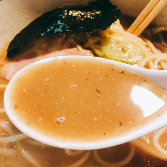 食べ慣れると豚骨、鶏ガラ、鯖節、鰹節、野菜などをスープの奥にしっかり感じることが出来ます。