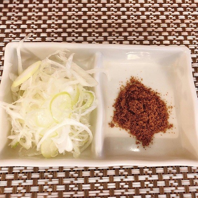 つけ汁に刻み玉ねぎ、ネギ、柚子が入っていました。