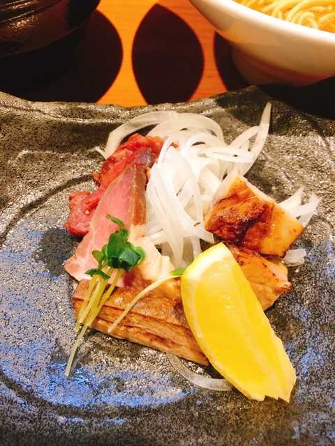 豚と鶏のレアチャーシューもしっとりしていて美味しい。