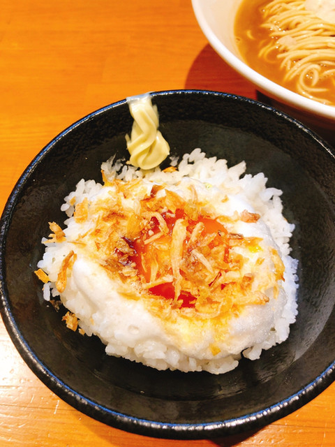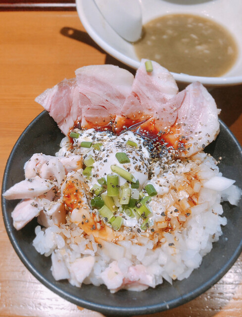 トッピングで熱々の中華蕎麦のスープか薄めたスープと薬味が付いたひつまぶしみたいにしてメニュー化をしてくれないかな〜と、勝手に思いを巡らせています。