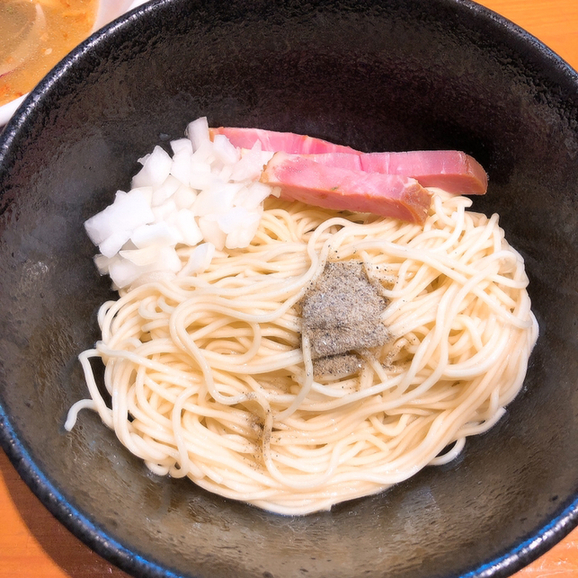 専用の和え玉も同じ三河屋製麺の麺を冷やして使用しているので、滑らかな麺肌と煮干しオイルとの絡みが良くツルツルと喉越し良くいただけます。