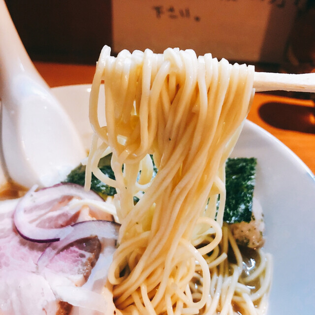 中華蕎麦用に変更した三河屋製麺製の中細ストレート麺は硬めながら滑らかでモッチリ感がありスープに良く馴染んで味わえる麺に仕上がっています。
