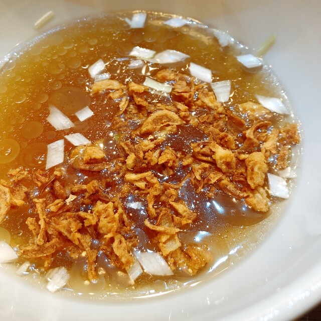 節の出汁を堪能して、トッピングのチャーシュー類に舌鼓を打ち、焦がし玉ねぎオイルとフライドオニオンをいれてパワーアップさせてフィニッシュしました。