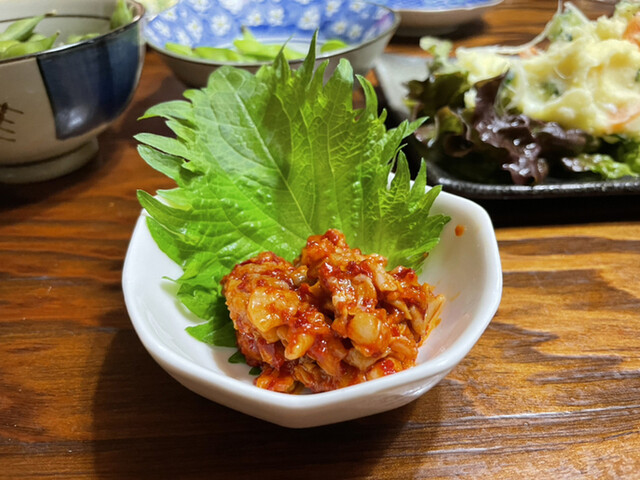 きゅうりのニンニク一本漬け。コレもいつ頃からかベンチ入りしたメニュー。しかし頭角を表し今では主力選手