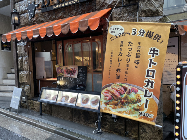 牛トロカレーの大きなタペストリー看板。ロックオン!