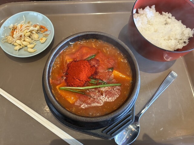 今回フードコートは早めに行ってので空いてました。純豆腐セット980円お安く頂きました。