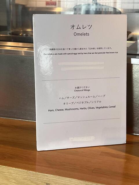 そして、SATSUKIさんが推している『玄米卵』を使用して作る『白いオムレツ』です。トッピングを伝えて目の前で手早く作られ、提供して貰えます♬