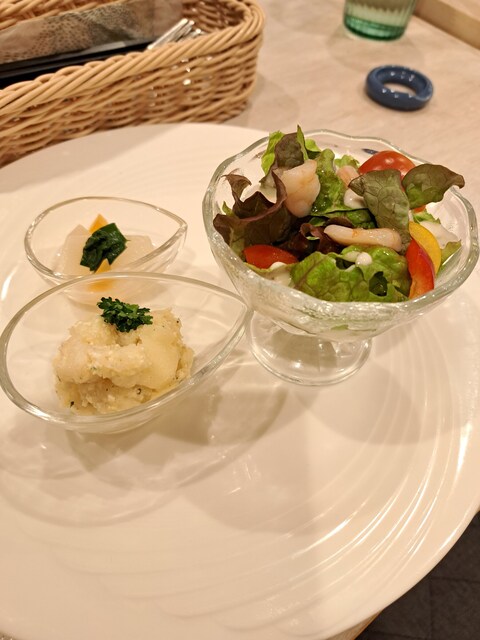 ♦前菜盛り合わせ 彩もキレイで サラダのドレッシングが量も味も好み(*^^*) ポテサラの味付けが丁度良くてとても美味しい
