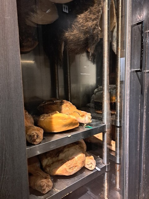 入口付近の大きな貯蔵庫には肉塊が所狭しと吊り下げられていて