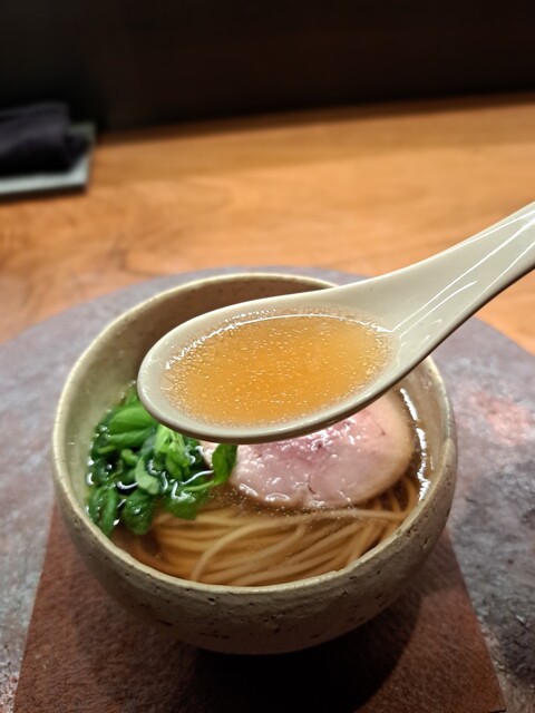 雉や鴨から抽出した出汁がベースの琥珀色のスープが旨し(^^♪