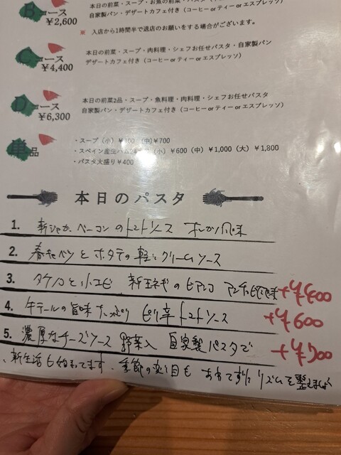パスタは2種類をお願いしましたが、シェフから2種類を別々に提供しますよと、嬉しいお声掛け(*^^*)