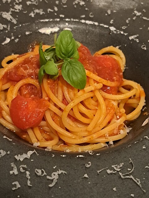 修行中の若い女性スタッフが一所懸命湯剥きしたトマトをタップリと使用したパスタです✨