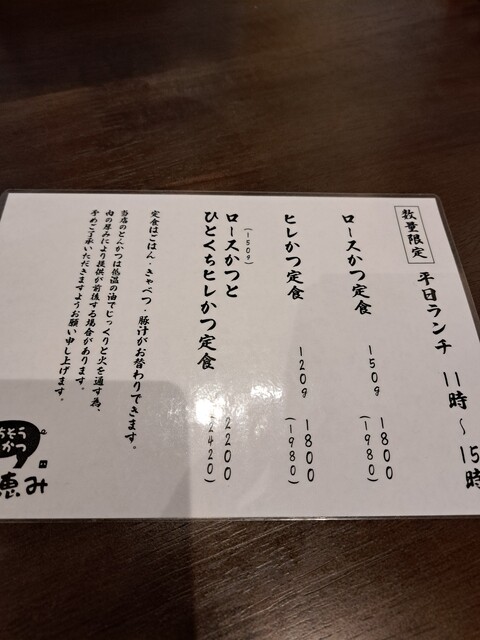 ✅[b:上ヒレカツ定食150g 2,550(税込)]