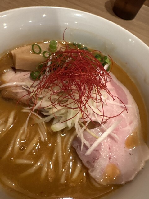 麺はカッペリーニを思わせる細麺でスープがよくからみます。麺とスープをレンゲで一緒にしてワンスプーンでいただくと、麺とスープが合う!