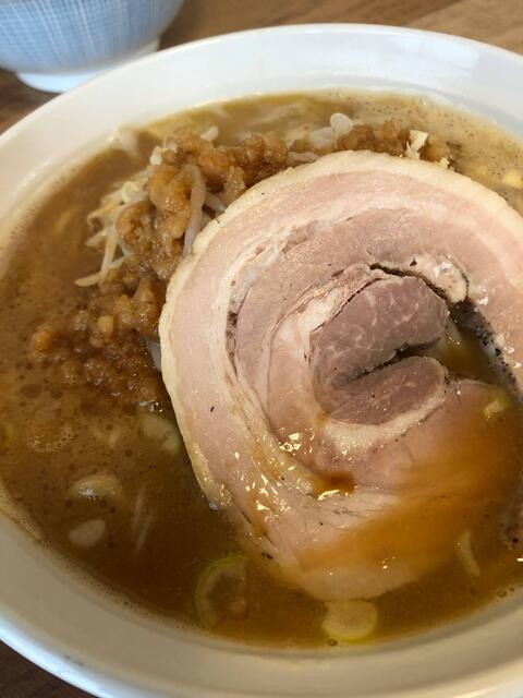 まぜまぜすると焼豚が粉々になって麺とスープ、具材が一体化します。