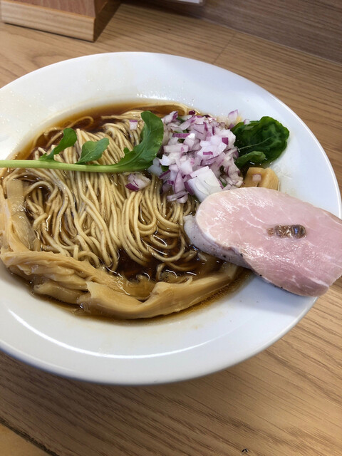 刻まれた水菜とタマネギがシャキシャキでスープに合う。フライドエシャロットが香ばしくてアクセントになります。