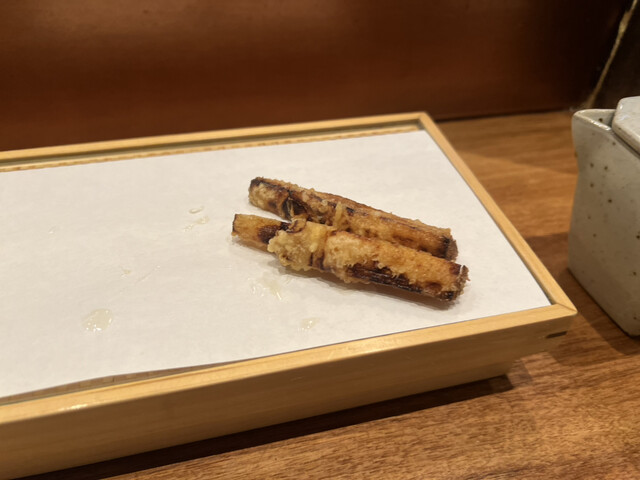 母が天ぷらを食べたいというので、サクッと予約ができたこちらの店へ。予約してから知ったが、ミシュラン一つ星。古民家の中に入るとこじんまりしたカウンター。菜の花のおひたしと自然薯のお通しにはじまり、エビ・エビの頭の天ぷら、刺身、たけのこやイカ、アスパラなど続き、最後はあなご天丼。軽い衣が心地よく、サクサク食べられたが、最後はお腹いっぱいに。アスパラの天ぷら、真ん中あたりのみずみずしさが残っている部分が、特に美味しかった。